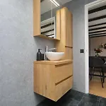 Az apartman extrái között szerepel a vendégek számára biztosított hajszárító és fürdőlepedők a fürdőszobában.